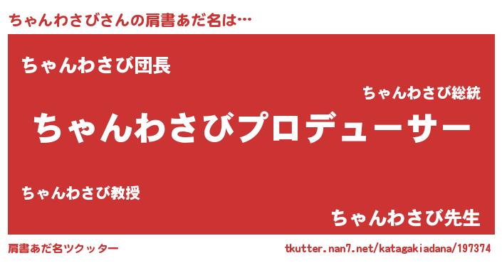 | ヘコむあだ名 | 『ちゃぷりん』『ちゃんわさび(小並感)』 |