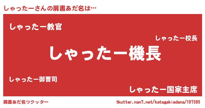 | 男性向けラノベタイトル風あだ名 | 『緋弾のシャッター』『しゃったーの憂鬱』 |
