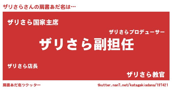 | 意味不明あだ名 | 『永久保存ザリさら』『ペロリンザリさら』 |
