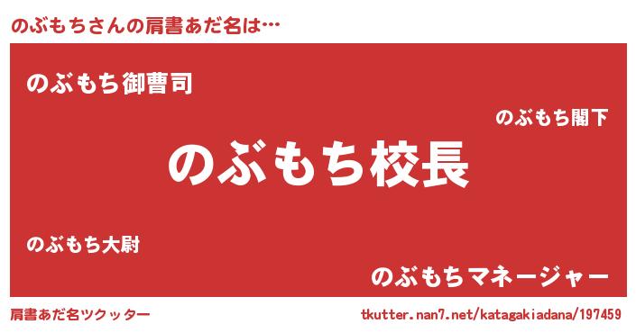 | 胡散臭い通販商品みたいなあだ名 | 『絶対に幸福をもたらす健康食品…その名も「のぶもち」』 |