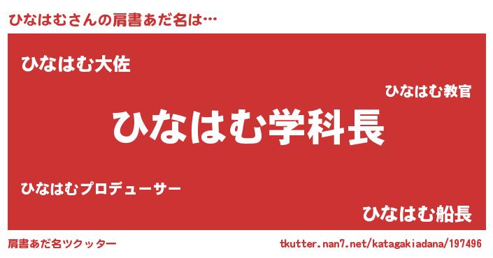 | ヒーロー風カッコイイあだ名 | 『正義の使者ひなはむ』『仮面ヒナダー』 |