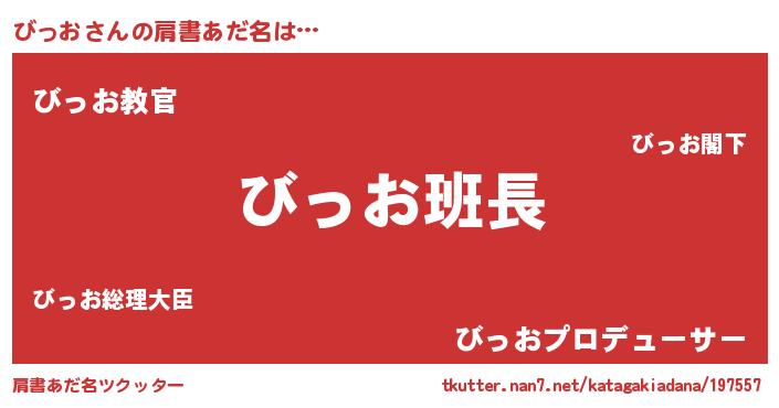 | 女子向けラノベタイトル風あだ名 | 『びっおの卵を拾いまして』『闇のびっお』 |