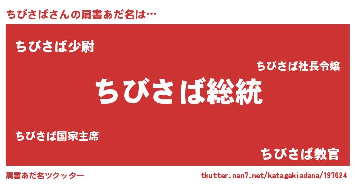 | 男性向けラノベタイトル風あだ名 | 『Re:ちびさばから始める異世界生活』 |