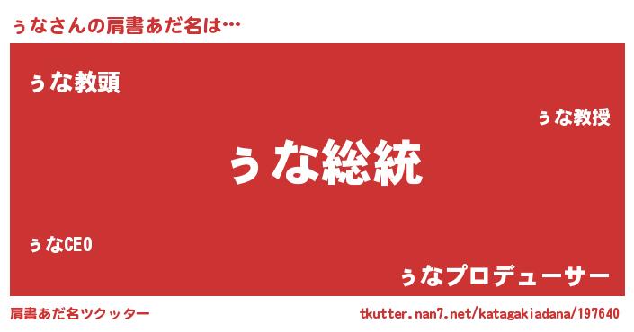 | 意味不明あだ名 | 『自称ぅな』『永久保存ぅな』 |