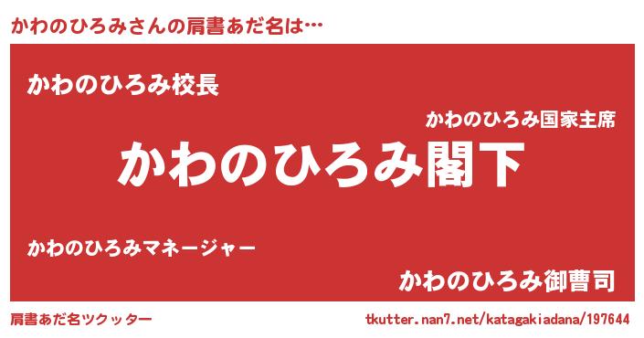 | 男性向けラノベタイトル風あだ名 | 『Re:かわのひろみから始める異世界生活』 |