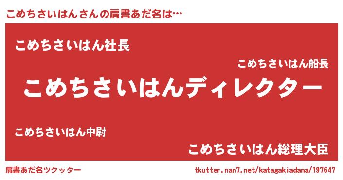| 男性向けラノベタイトル風あだ名 | 『こめちさいはんに滅ぼされるだけの簡単なお仕事です』 |