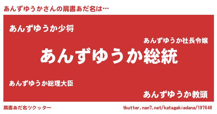 | ヘコむあだ名 | 『あんずゆうか(爆)』『あんもー』 |