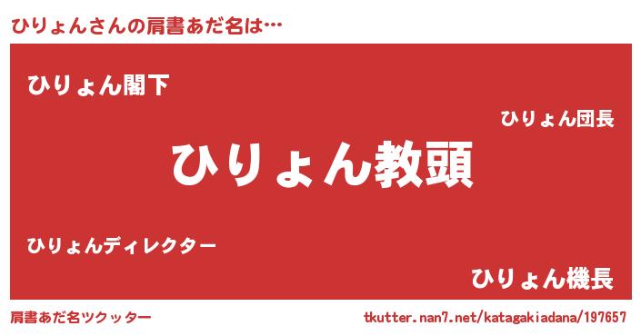 | 意味不明あだ名 | 『永久保存ひりょん』『自称ひりょん』 |