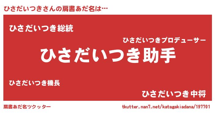 | ヒーロー風カッコイイあだ名 | 『正義の使者ひさだいつき』 |