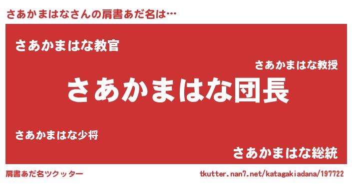 | 胡散臭い通販商品みたいなあだ名 | 『信頼と実績のサプリメント…その名も「さあかまはな」』 |