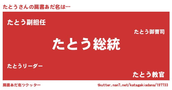 | 意味不明あだ名 | 『自称たとう』『永久保存たとう』 |
