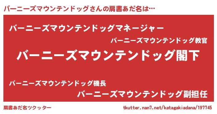 | 女子向けラノベタイトル風あだ名 | 『バーニーズマウンテンドッグアンティーク』 |