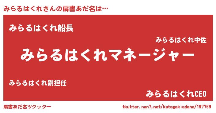 | 恥ずかしいあだ名 | 『プリティーみらるはくれ』『みらちん』 |
