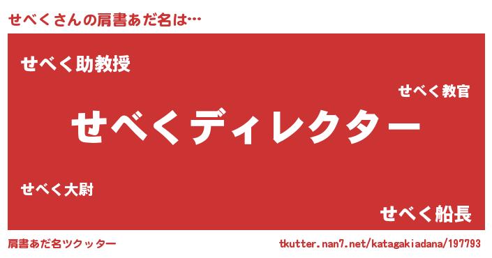 | 欧米人風あだ名 | 『アンジェラ・せべく』『ダニエルせべく』 |
