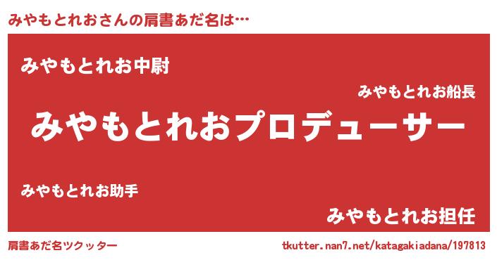 | ヘコむあだ名 | 『みやもとれお(苦笑)』『みやにゅー』 |