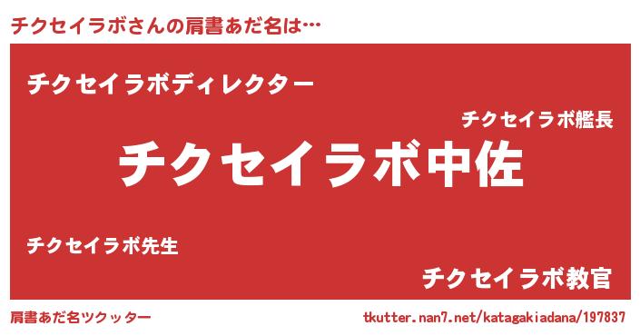 | ヒーロー風カッコイイあだ名 | 『仮面チクダー』『ネオチクセイラボ』 |