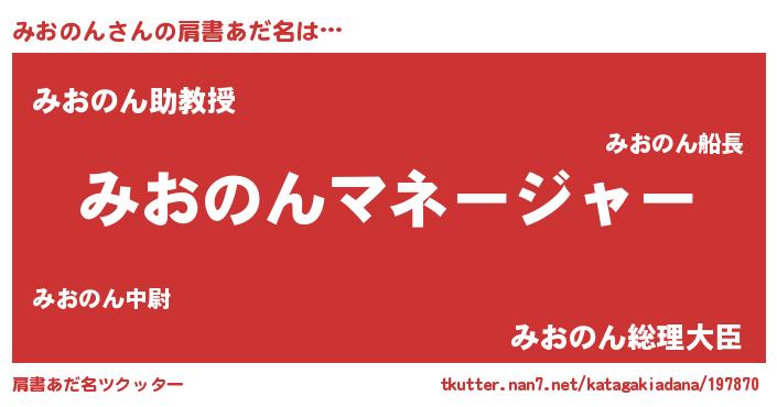 | 男性向けラノベタイトル風あだ名 | 『みおのんに滅ぼされるだけの簡単なお仕事です』 |
