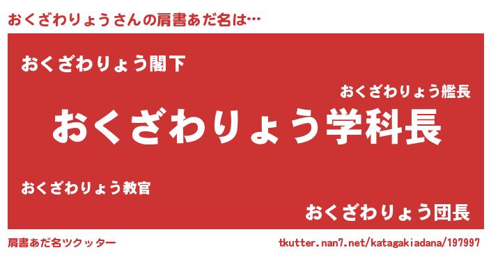 | 男性向けラノベタイトル風あだ名 | 『おまえをオタクにしてやるから、俺をおくざわりょうにしてくれ! 』 |
