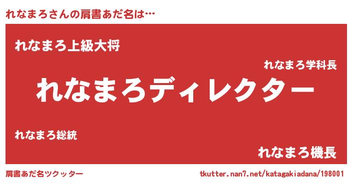 | 男性向けラノベタイトル風あだ名 | 『はたらくれなまろさま!』 |