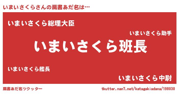 | 意味不明あだ名 | 『とにかく怪しいいまいさくら』 |