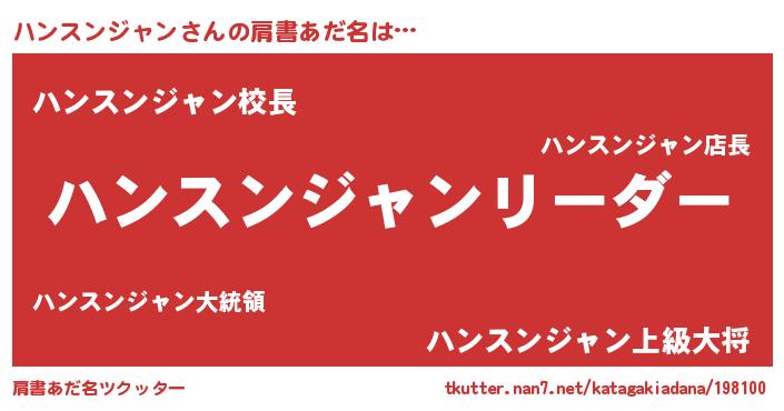 | ポケモン風あだ名 | 『ヒハンスンジャン』『ゼニハン』 |