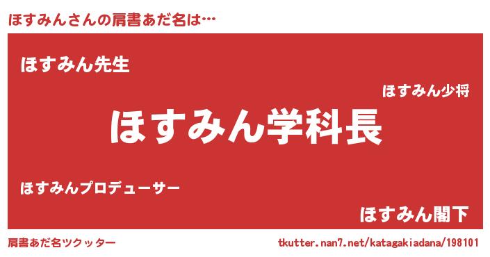 | ヒーロー風カッコイイあだ名 | 『天空の使者ほすみん』『ネオホスミン』 |