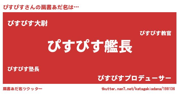 | ヒーロー風カッコイイあだ名 | 『仮面ピスダー』『幻影騎士ピス』 |