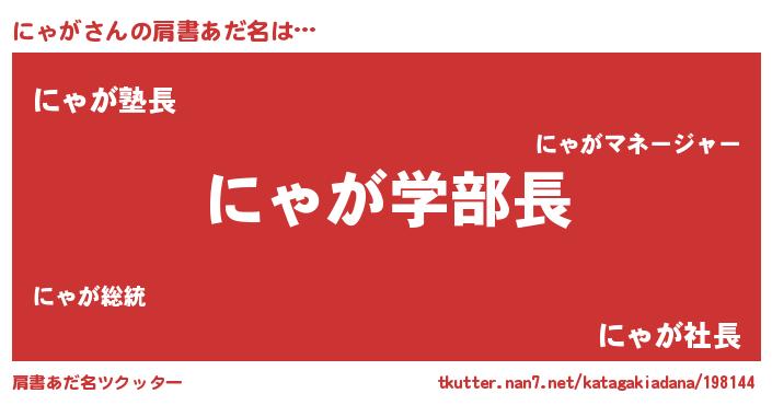 | ヒーロー風カッコイイあだ名 | 『慈愛の使者にゃが』『幻影騎士ニャ』 |