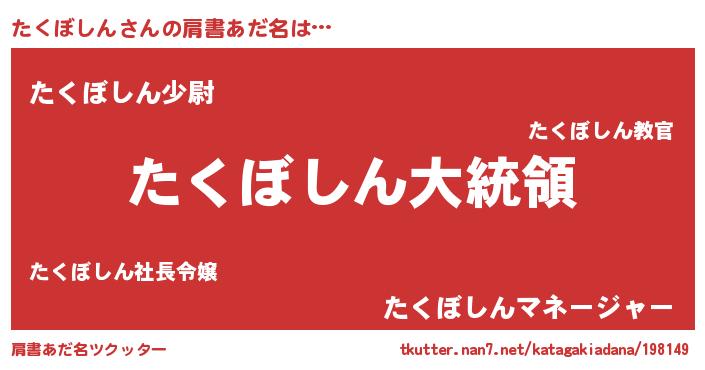 | ファンタジー風あだ名 | 『エターナルタクボシンー』『タクフェル』 |