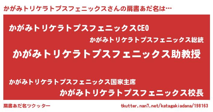 | 意味不明あだ名 | 『眠気覚ましガムかがみトリケラトプスフェニックス味』 |
