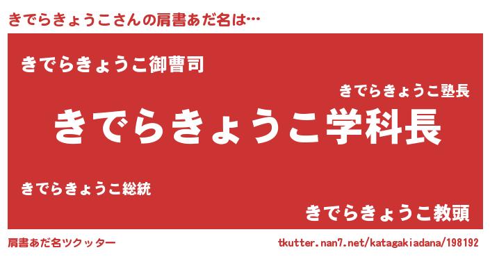 | ヘコむあだ名 | 『きでもー』『きでらきょうこ(遠い目)』 |