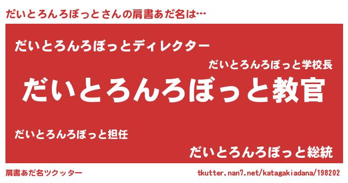 | 意味不明あだ名 | 『住所不定無職だいとろんろぼっと(91歳)』 |
