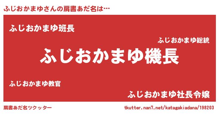 | 意味不明あだ名 | 『とにかく怪しいふじおかまゆ』 |