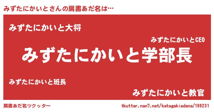 | 男性向けラノベタイトル風あだ名 | 『おまえをオタクにしてやるから、俺をみずたにかいとにしてくれ! 』 |