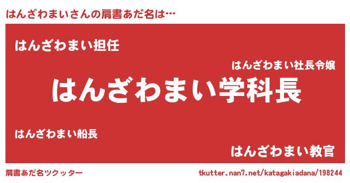 | 男性向けラノベタイトル風あだ名 | 『おまえをオタクにしてやるから、俺をはんざわまいにしてくれ! 』 |