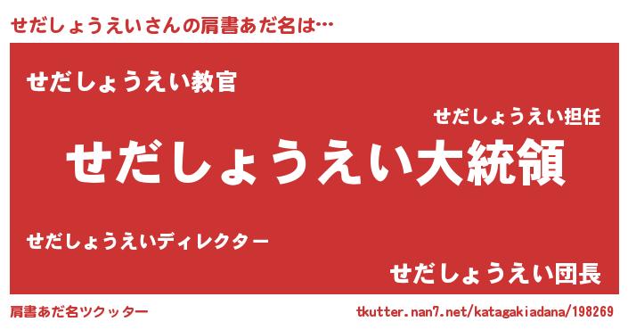 | 意味不明あだ名 | 『せだしょうえいフォーエバー』 |