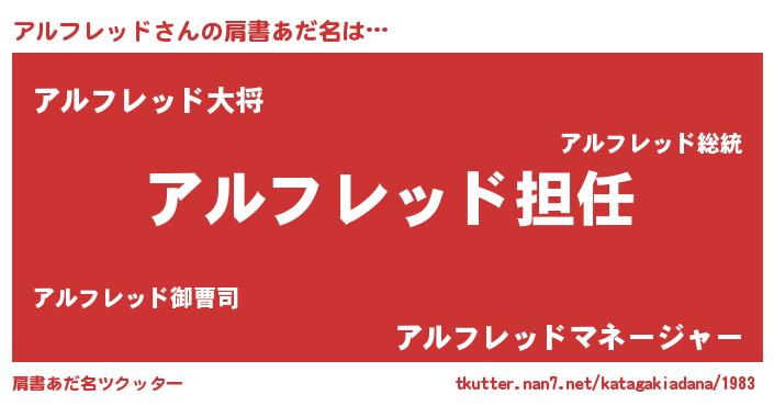 | 意味不明あだ名 | 『永久保存アルフレッド』 |