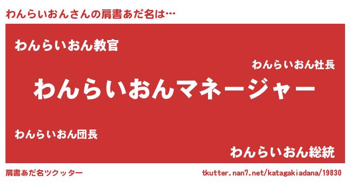 | 意味不明あだ名 | 『住所不定無職わんらいおん(11歳)』 |