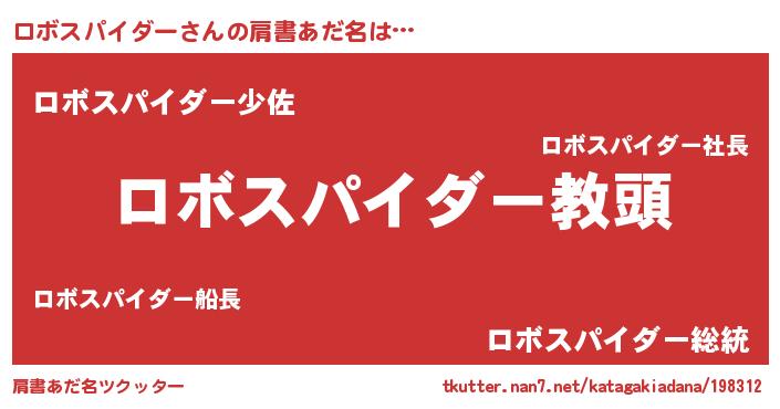 | ヘコむあだ名 | 『ロボスパイダー(笑)』『ロボにー』 |