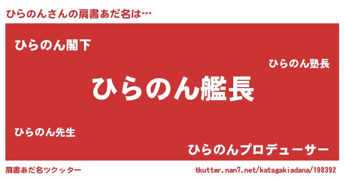 | 意味不明あだ名 | 『自称ひらのん』『永久保存ひらのん』 |