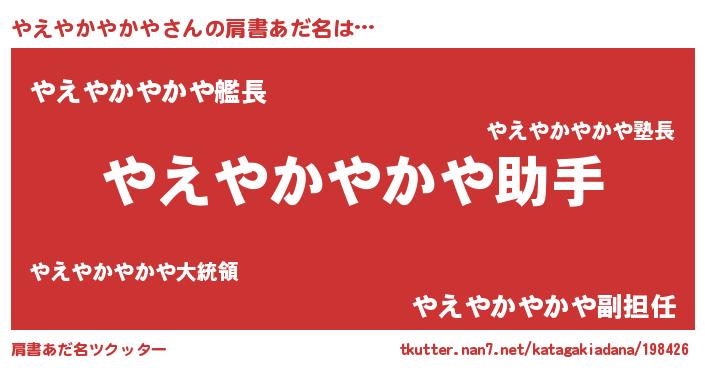 | ピコ太郎風あだ名 | 『ヤヤ太郎』『ピコヤ郎』『ヤエ六郎』 |