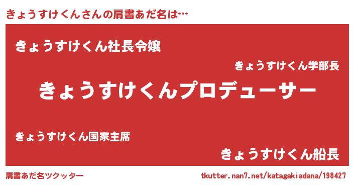 | 男性向けラノベタイトル風あだ名 | 『はたらくきょうすけくんさま!』 |