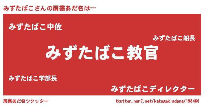 | 男性向けラノベタイトル風あだ名 | 『この素晴らしい世界にみずたばこを!』 |