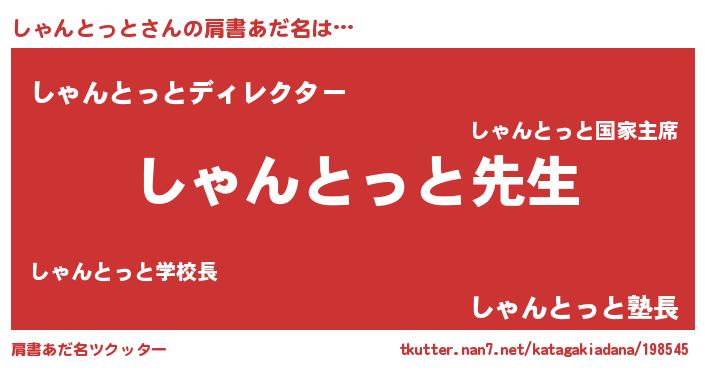 | ヘコむあだ名 | 『しゃんとっと(小並感)』『しゃっぺ』 |