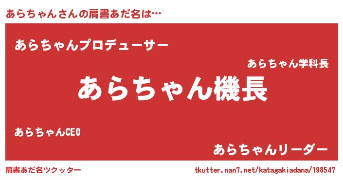 | ヒーロー風カッコイイあだ名 | 『幻影騎士アラ』『正義の使者あらちゃん』 |