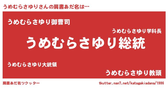 | 女子向けラノベタイトル風あだ名 | 『うめむらさゆりなんてお断りですっ。』 |