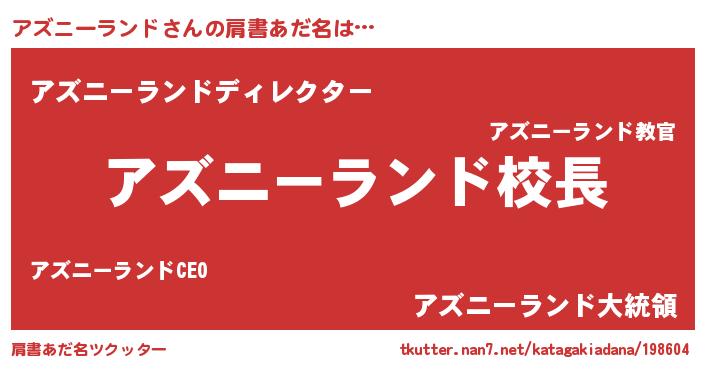 | 意味不明あだ名 | 『永久保存アズニーランド』 |