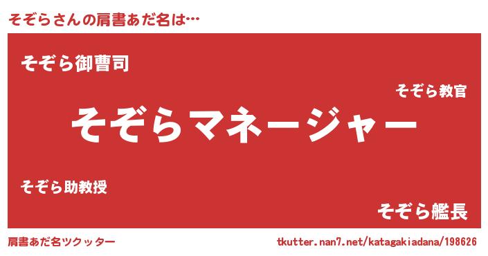| 男性向けラノベタイトル風あだ名 | 『そぞらに滅ぼされるだけの簡単なお仕事です』 |