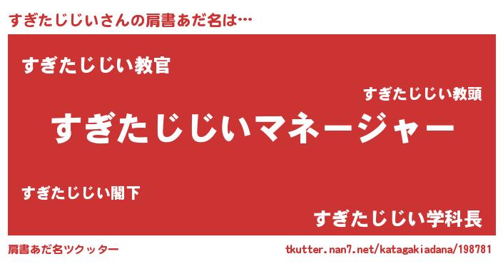 | ヘコむあだ名 | 『すぎたじじい(小並感)』『なまこ酢』 |
