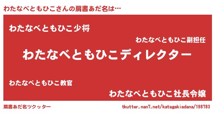 | 男性向けラノベタイトル風あだ名 | 『はたらくわたなべともひこさま!』 |